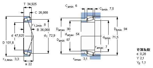 型號:528 R/522 品牌:SKF 系列:單列圓錐滾子軸承 內徑:47.625 mm 外徑:101.6 mm 寬度:34.925 mm