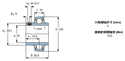 型號:YAR 211-2FW/VA228 品牌:SKF 系列:用于高溫應用場合的Y軸承 內徑:55 mm 外徑:100 mm 寬度:55.6 mm