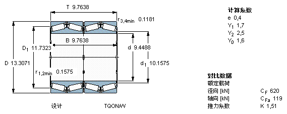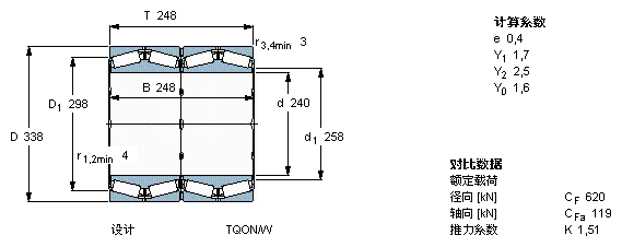 型號:BT4-0020/HA1 品牌:SKF 系列:TQO配置的四列圓錐滾子軸承 內徑:240 mm 外徑:338 mm 寬度:248 mm