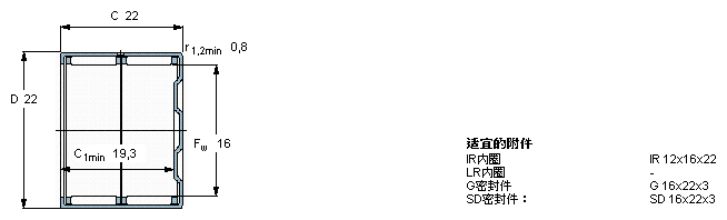 型號:BK 1622 品牌:SKF 系列:沖壓外圈滾針軸承 內徑:16 mm 外徑:22 mm 寬度:22 mm