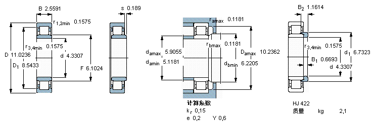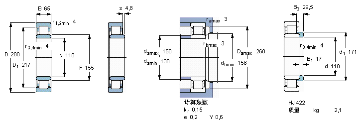 型號:NU 422 M 品牌:SKF 系列:單列圓柱滾子軸承 內徑:110 mm 外徑:280 mm 寬度:65 mm