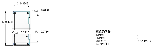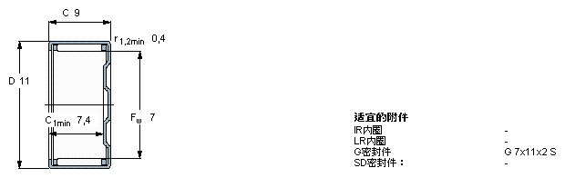 型號:BK 0709 品牌:SKF 系列:沖壓外圈滾針軸承 內徑:7 mm 外徑:11 mm 寬度:9 mm