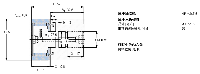 型號:KRV 35 PPA 品牌:SKF 系列:凸輪隨動滾子 內徑:16 mm 外徑:35 mm 寬度:52 mm