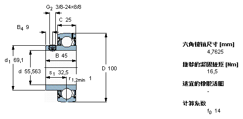 型號:YAT 211-203 品牌:SKF 系列:帶沉頭螺釘?shù)?Y 型軸承 內(nèi)徑:55.563 mm 外徑:100 mm 寬度:45 mm