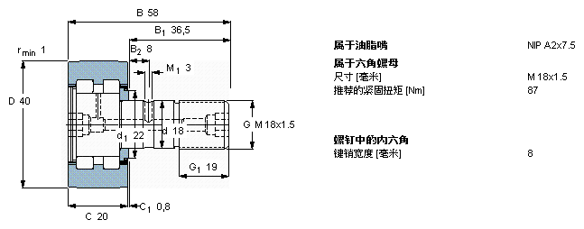 型號:PWKR 40.2RS 品牌:SKF 系列:凸輪隨動滾子 內徑:18 mm 外徑:40 mm 寬度:58 mm