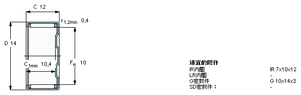 型號:BK 1012 品牌:SKF 系列:沖壓外圈滾針軸承 內(nèi)徑:10 mm 外徑:14 mm 寬度:12 mm