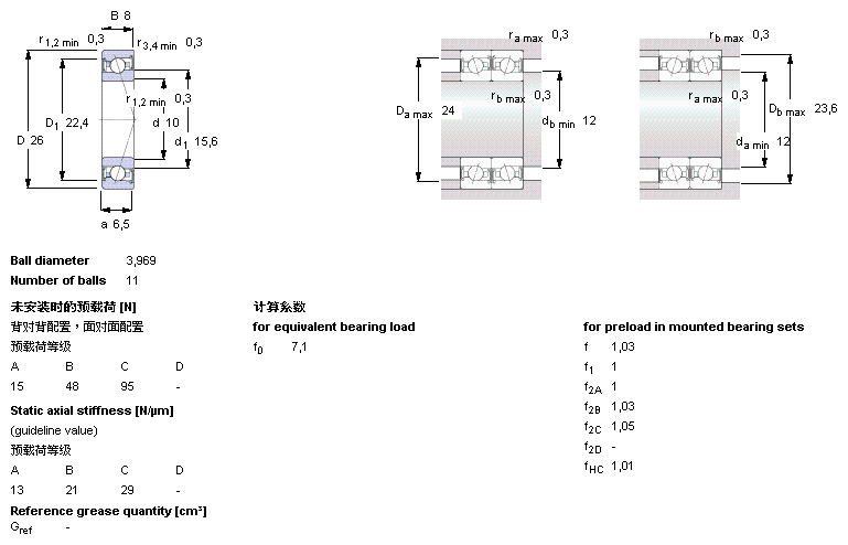 型號:S7000 CE/HCP4A 品牌:SKF 系列:SKF高精密和超精密角接觸球軸承 內徑:10 mm 外徑:26 mm 寬度:8 mm