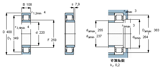 型號:NU 2244 ECMA 品牌:SKF 系列:單列圓柱滾子軸承 內徑:220 mm 外徑:400 mm 寬度:108 mm