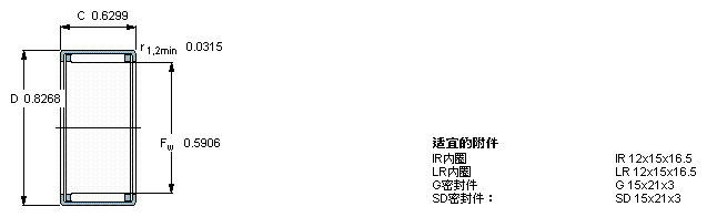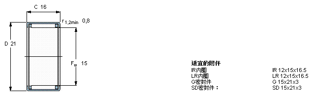 型號:HK 1516 品牌:SKF 系列:沖壓外圈滾針軸承 內徑:15 mm 外徑:21 mm 寬度:16 mm