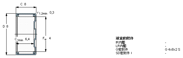 型號:BK 0408 品牌:SKF 系列:沖壓外圈滾針軸承 內徑:4 mm 外徑:8 mm 寬度:8 mm