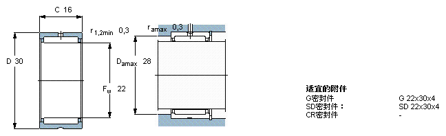 型號:NK 22/16 品牌:SKF 系列:帶機削環、法蘭、不帶內圈的滾針軸承 內徑:22 mm 外徑:30 mm 寬度:16 mm