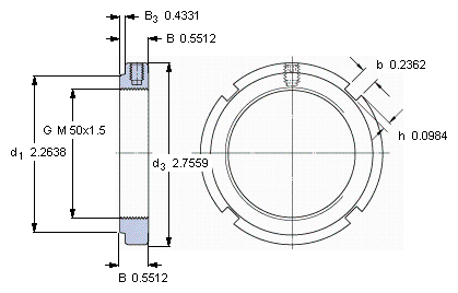型號:KMFE 10 品牌:SKF 系列:帶鎖定螺釘的KMFE鎖定螺母 內徑:50 mm 外徑:70 mm 寬度:14 mm