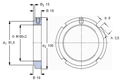 型號:KMFE 16 品牌:SKF 系列:帶鎖定螺釘的KMFE鎖定螺母 內徑:80 mm 外徑:105 mm 寬度:18 mm