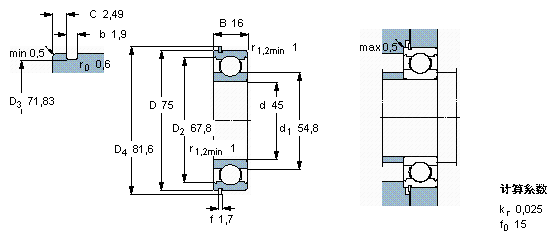 型號:6009 N * 品牌:SKF 系列:帶止動槽的單列深溝球軸承 內徑:45 mm 外徑:75 mm 寬度:16 mm