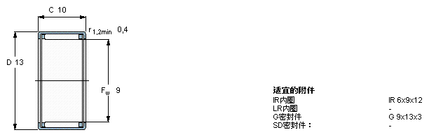型號:HK 0910 品牌:SKF 系列:沖壓外圈滾針軸承 內徑:9 mm 外徑:13 mm 寬度:10 mm